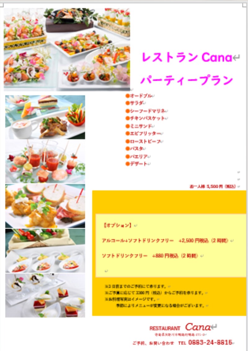 レストランカナでの、少人数でのお食事会プランといたしまして