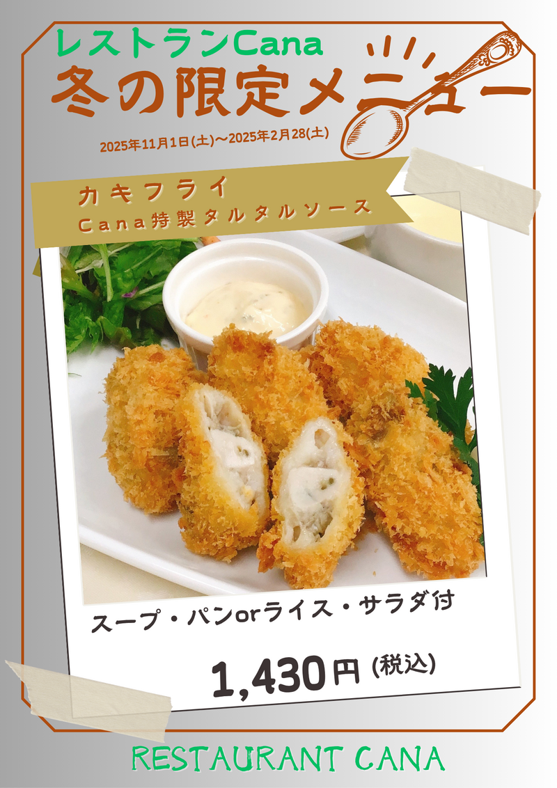 本年も「カキフライ Cana特製タルタルソース」をよろしくお願いいたします。