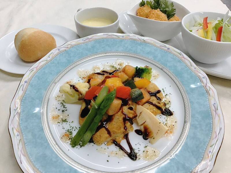 ・スープ・ポークピカタ・シーフードフライ・サラダ