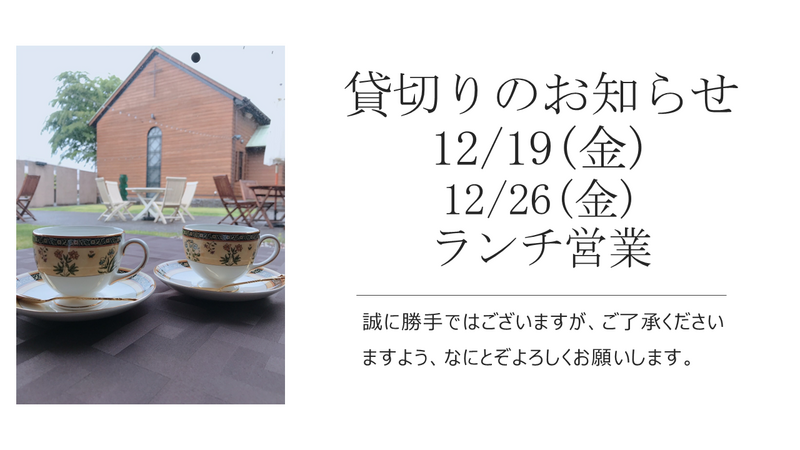 誠に勝手ながら12/19(金)と12/26(金)は予約貸切りの為