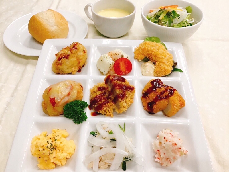 ・スクランブルエッグ・鶏ムネサラダ・カニとポテト