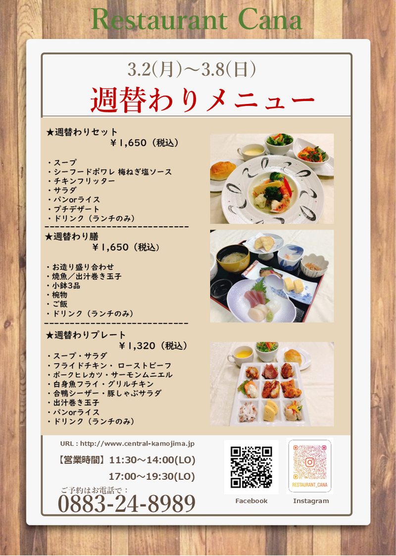 3/2(月)~3/8(日)までの週替わりメニューです。