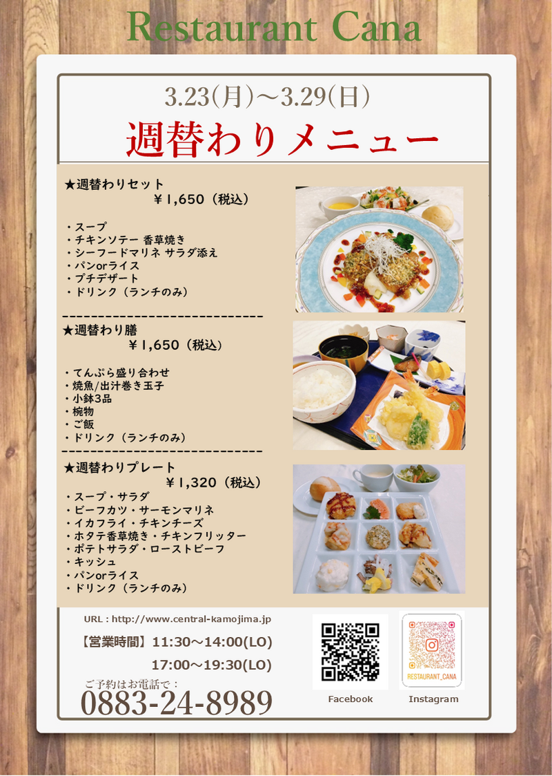 3/23(月)~3/29(日)の週替わりメニューのご案内です。