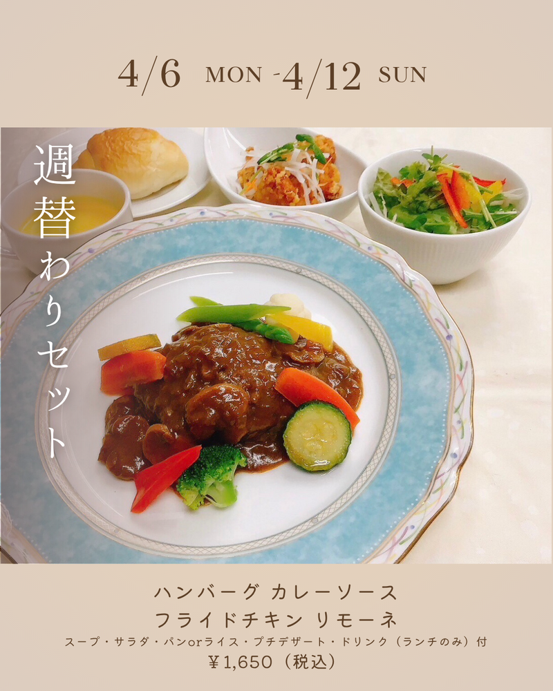 4/6(月)~4/12(日)の週替わりメニューです。