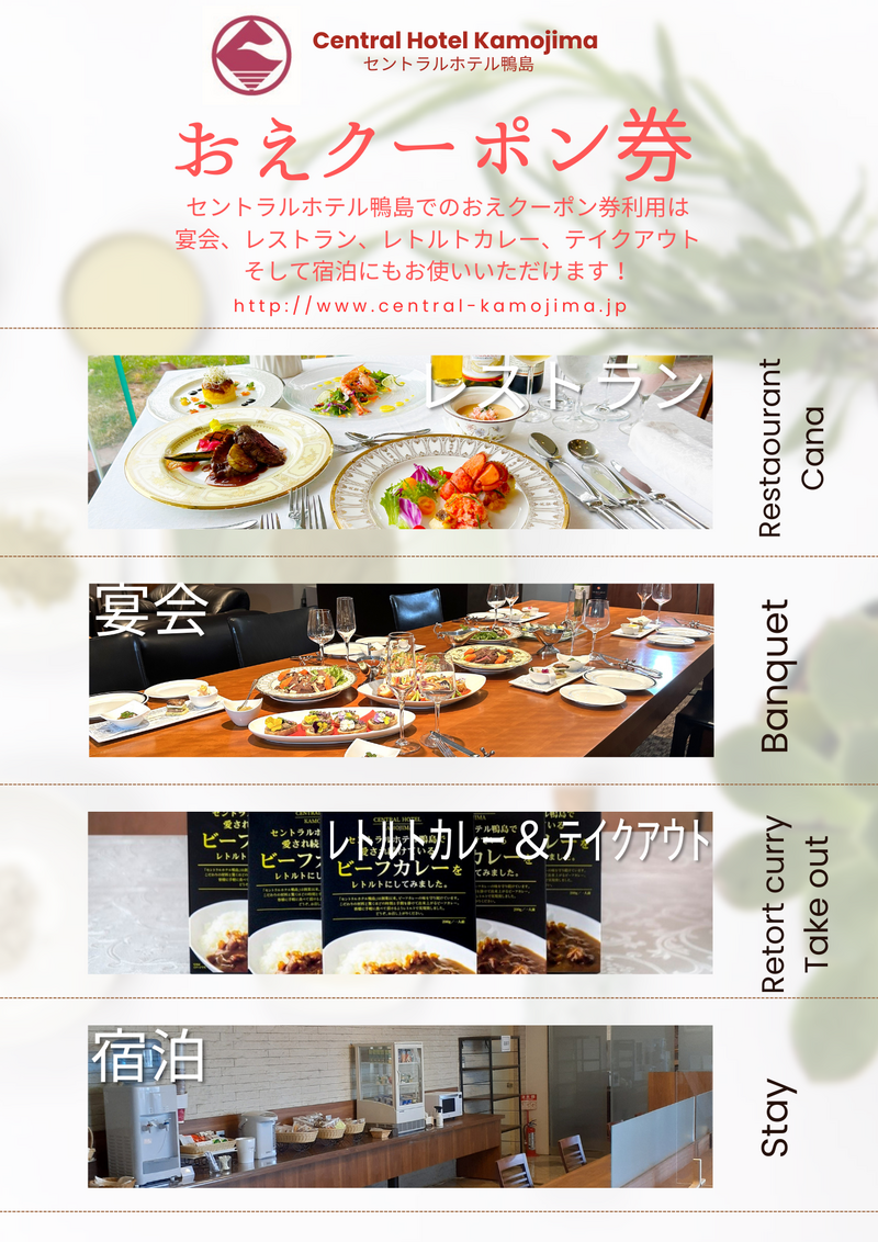 是非セントラルホテル鴨島でおえクーポン券をご利用くださいませ。